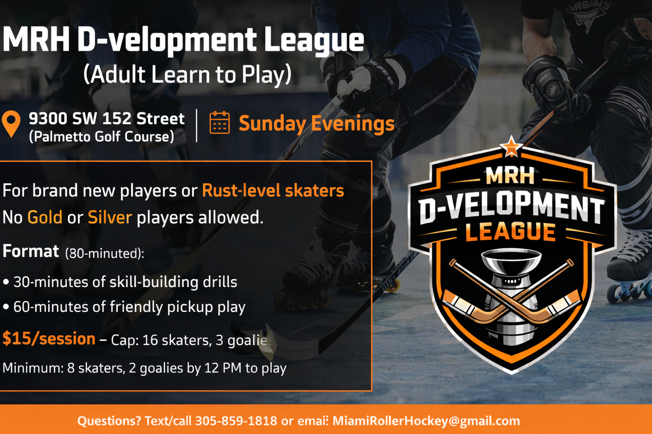 📲 Questions? Text/call 305‑859‑1818 or email MiamiRollerHockey@gmail.com